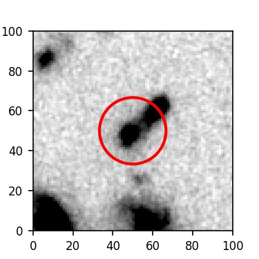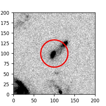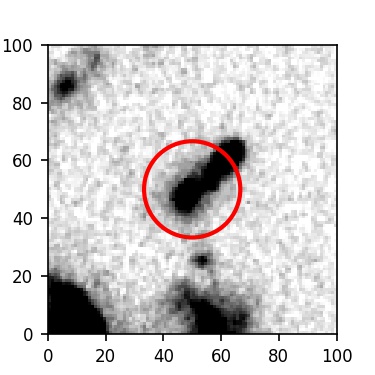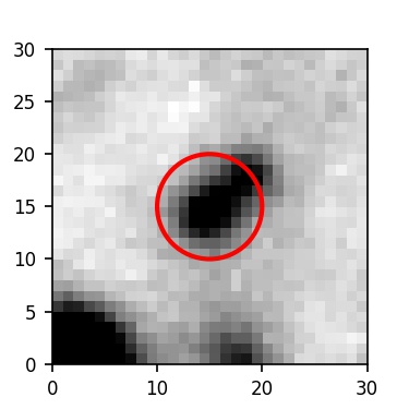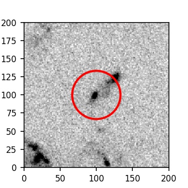 The red circle in the various panels is 1" in radius. The images are 6"x6".