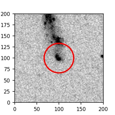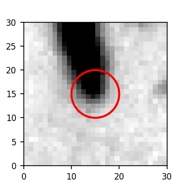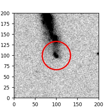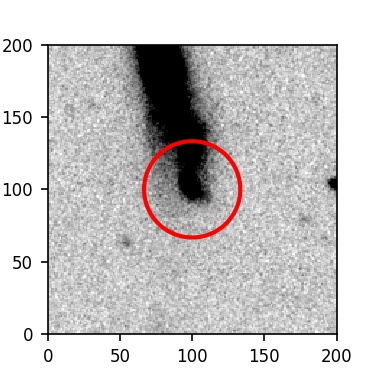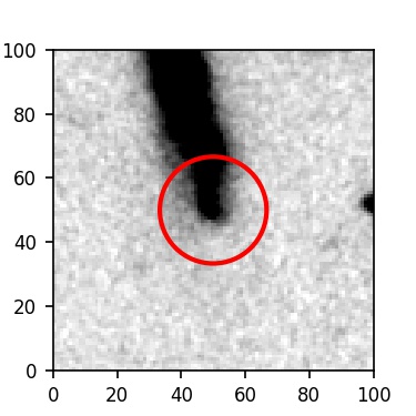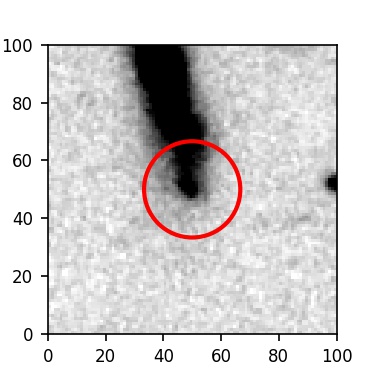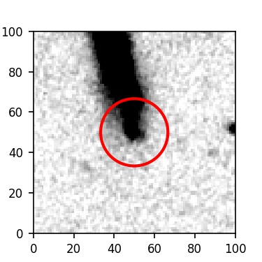 The red circle in the various panels is 1" in radius. The images are 6"x6".