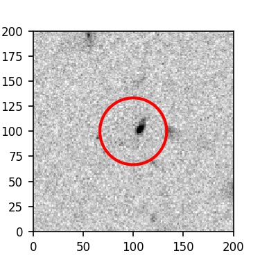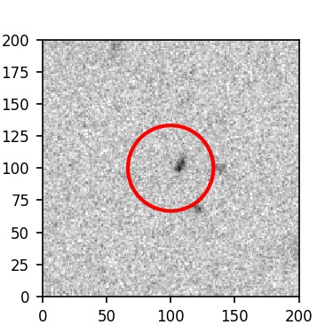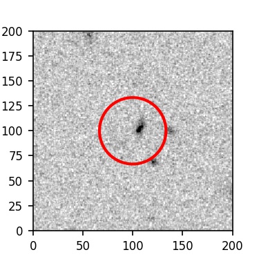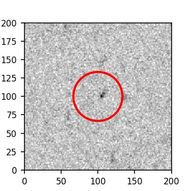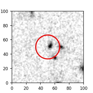 The red circle in the various panels is 1" in radius. The images are 6"x6".