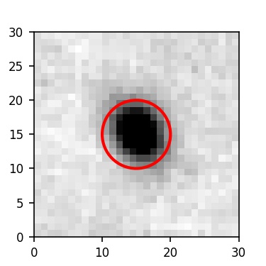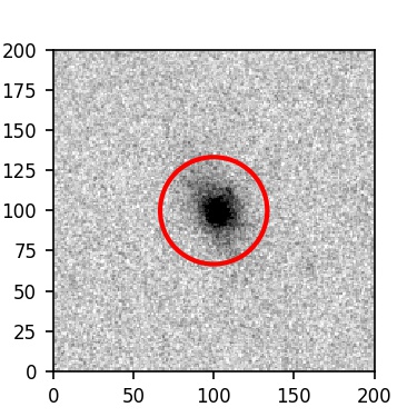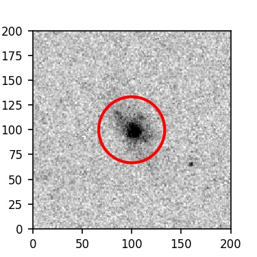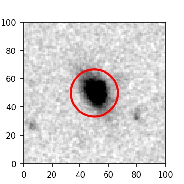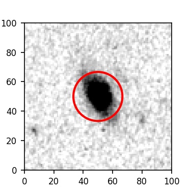 The red circle in the various panels is 1" in radius. The images are 6"x6".