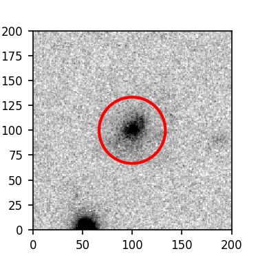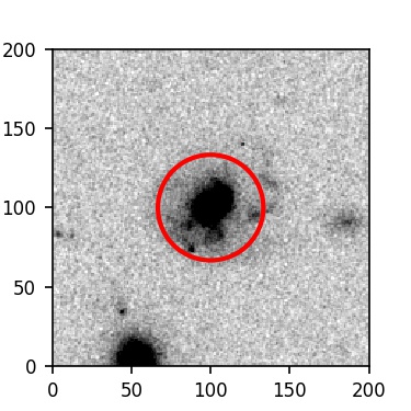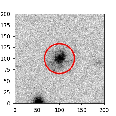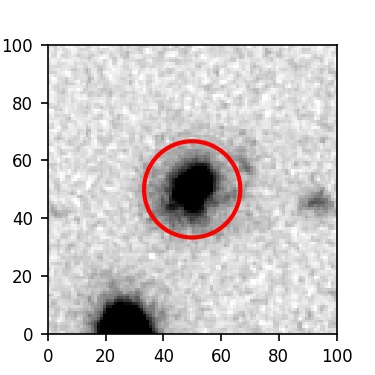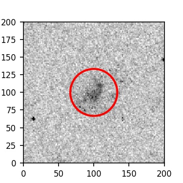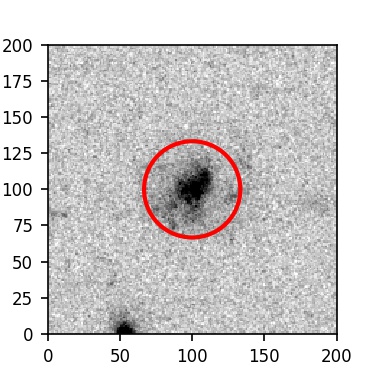 The red circle in the various panels is 1" in radius. The images are 6"x6".