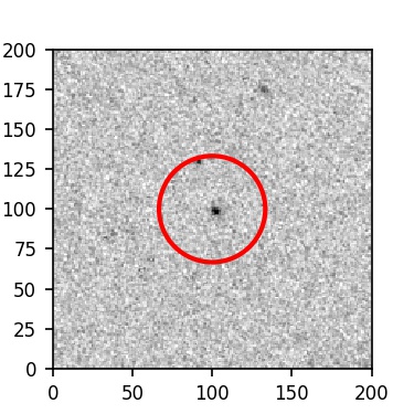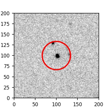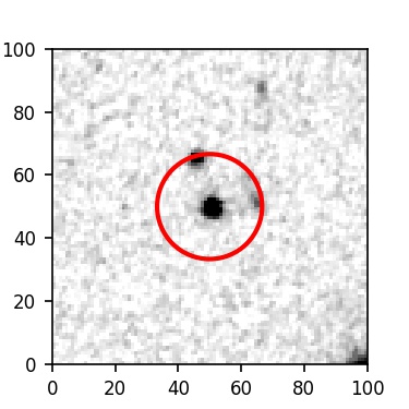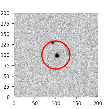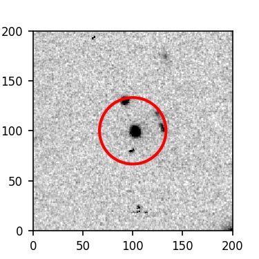 The red circle in the various panels is 1" in radius. The images are 6"x6".