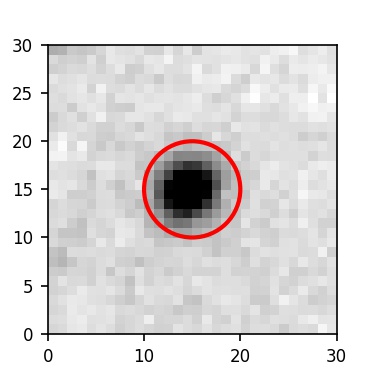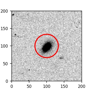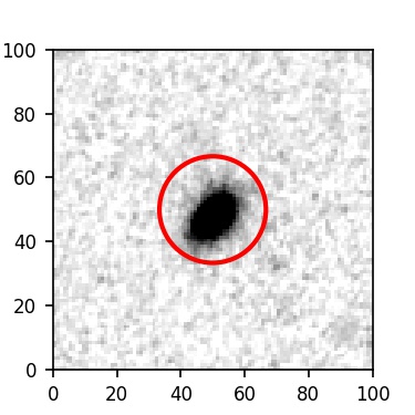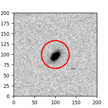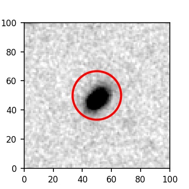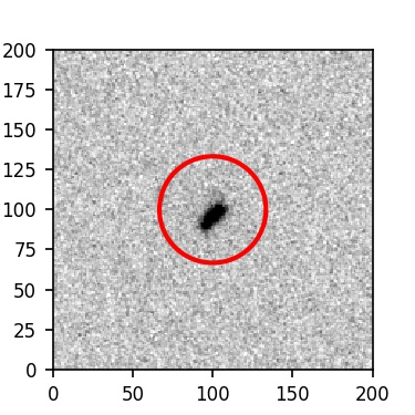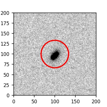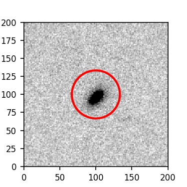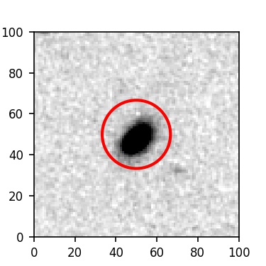 The red circle in the various panels is 1" in radius. The images are 6"x6".