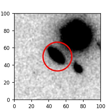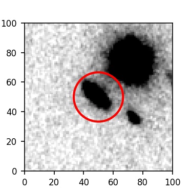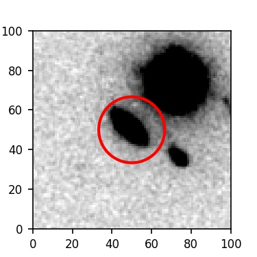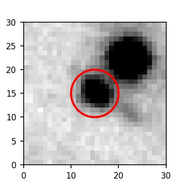 The red circle in the various panels is 1" in radius. The images are 6"x6".