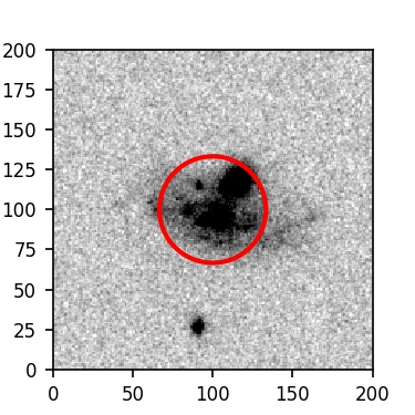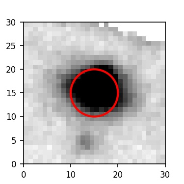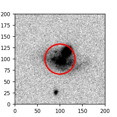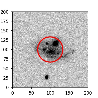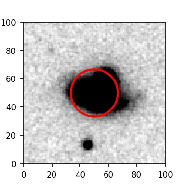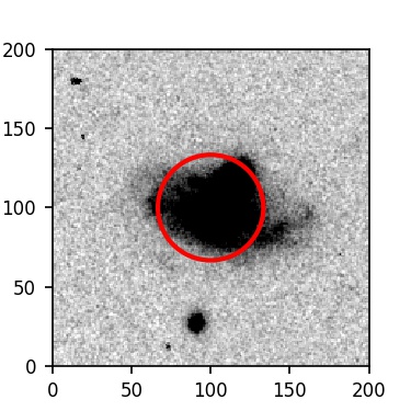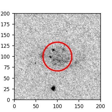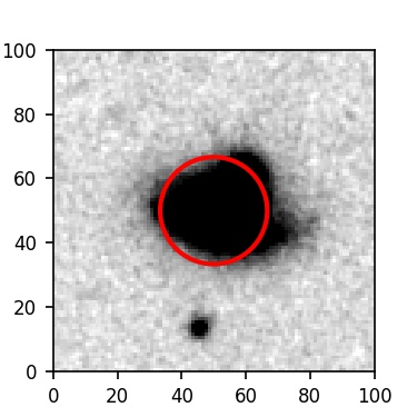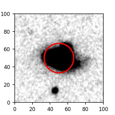 The red circle in the various panels is 1" in radius. The images are 6"x6".