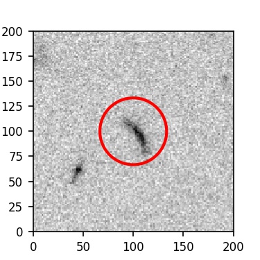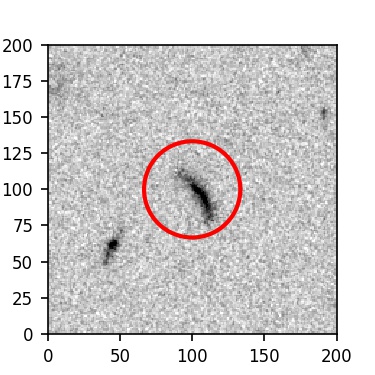 The red circle in the various panels is 1" in radius. The images are 6"x6".