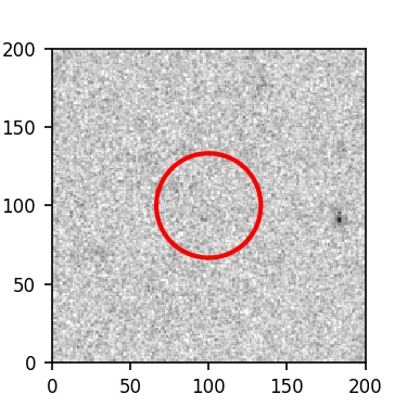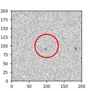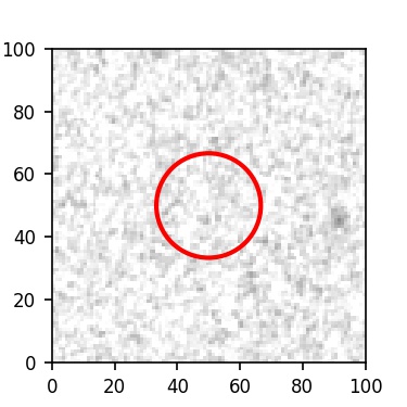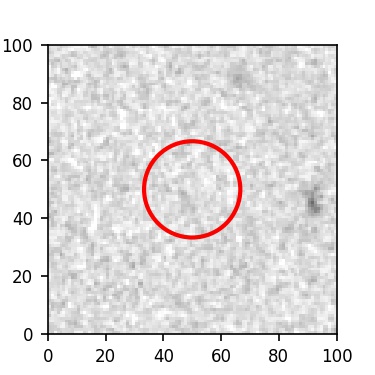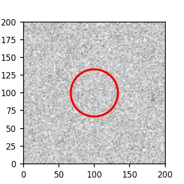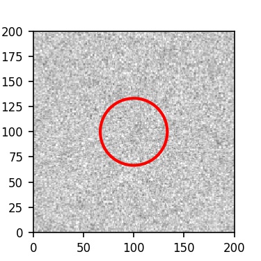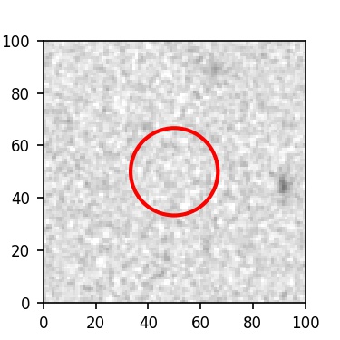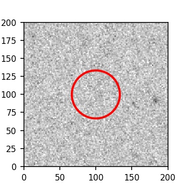 The red circle in the various panels is 1" in radius. The images are 6"x6".
