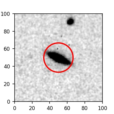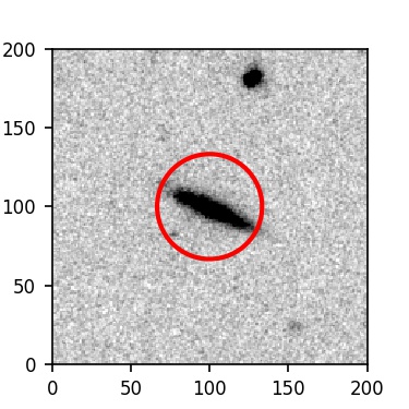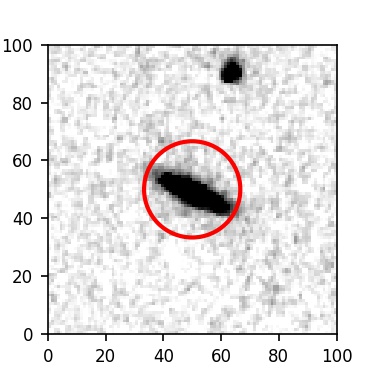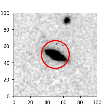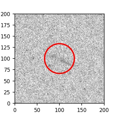 The red circle in the various panels is 1" in radius. The images are 6"x6".