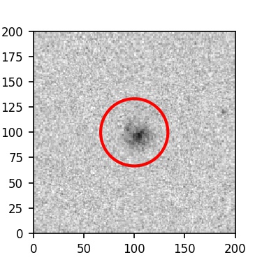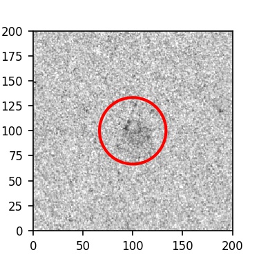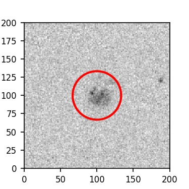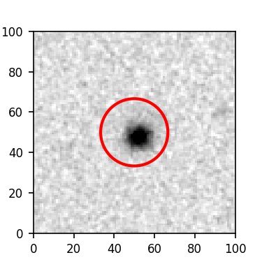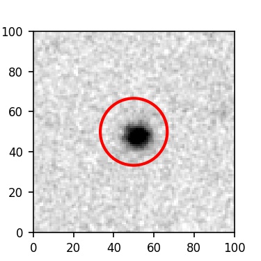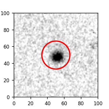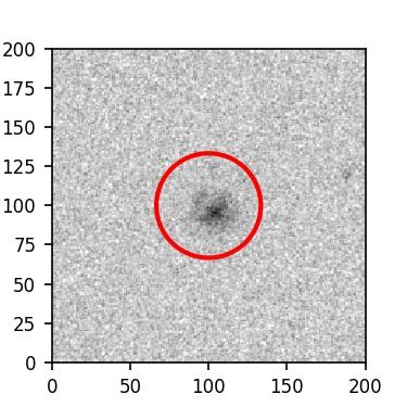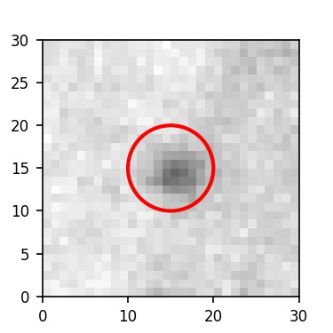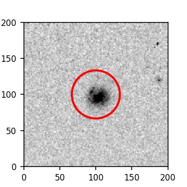 The red circle in the various panels is 1" in radius. The images are 6"x6".