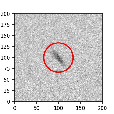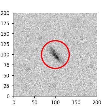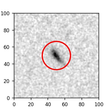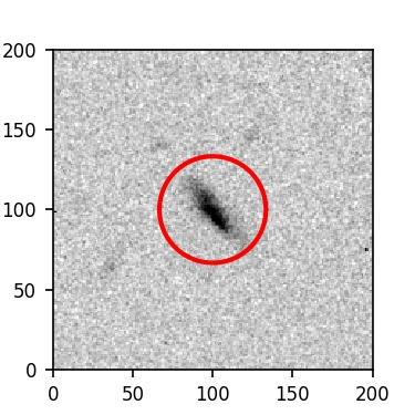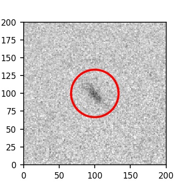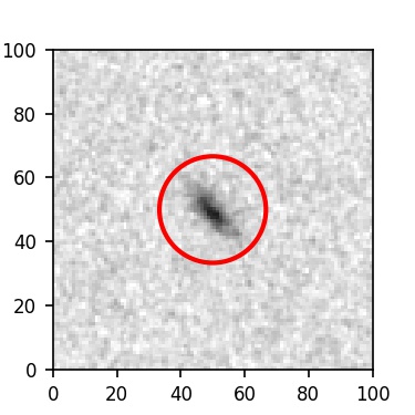 The red circle in the various panels is 1" in radius. The images are 6"x6".