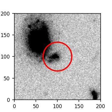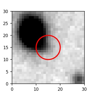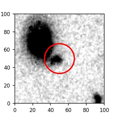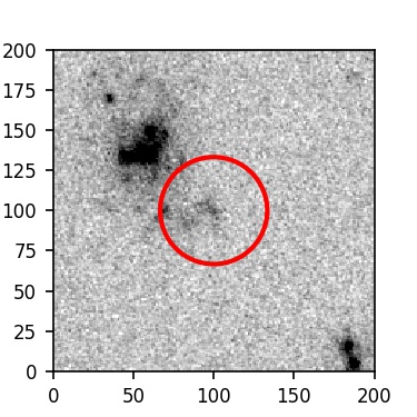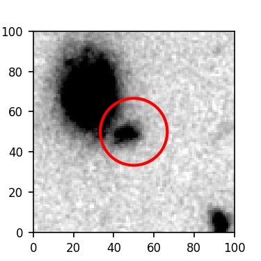 The red circle in the various panels is 1" in radius. The images are 6"x6".