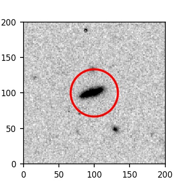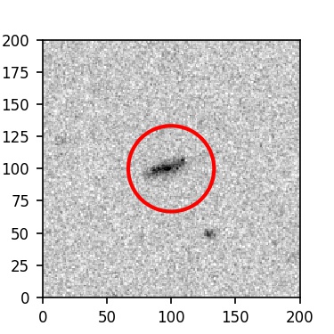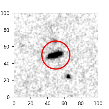 The red circle in the various panels is 1" in radius. The images are 6"x6".