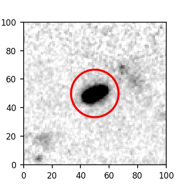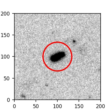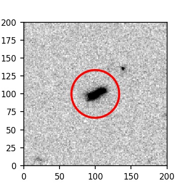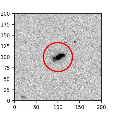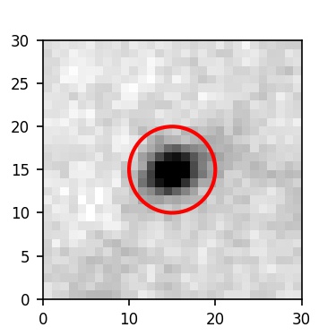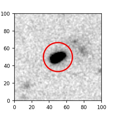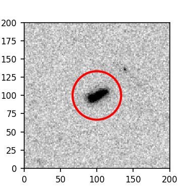 The red circle in the various panels is 1" in radius. The images are 6"x6".