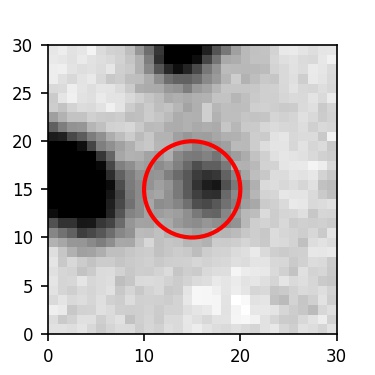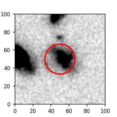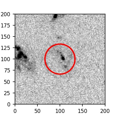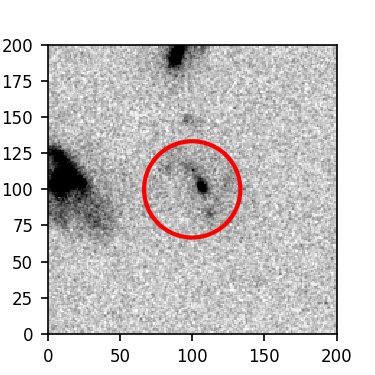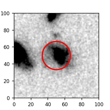 The red circle in the various panels is 1" in radius. The images are 6"x6".