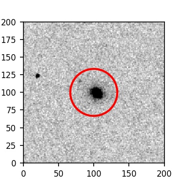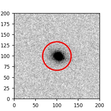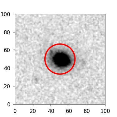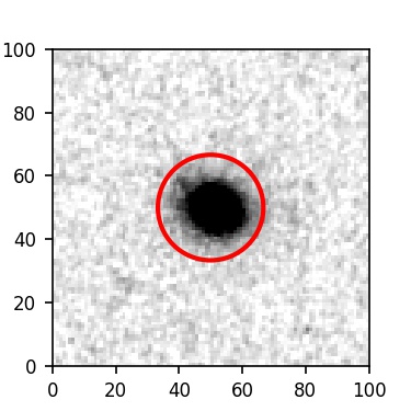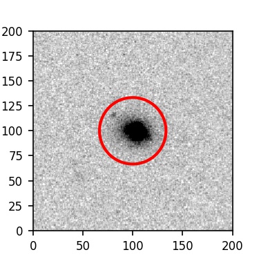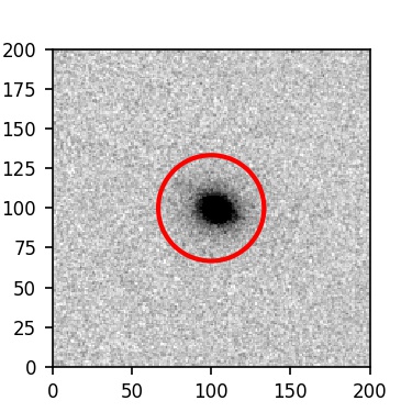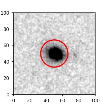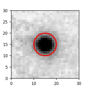 The red circle in the various panels is 1" in radius. The images are 6"x6".