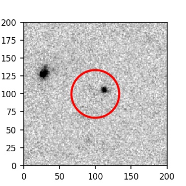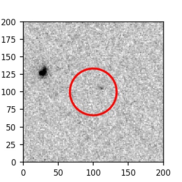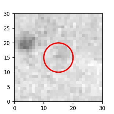 The red circle in the various panels is 1" in radius. The images are 6"x6".