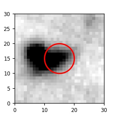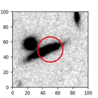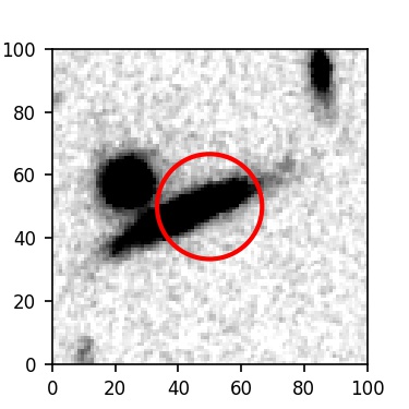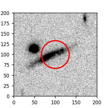 The red circle in the various panels is 1" in radius. The images are 6"x6".