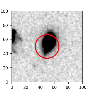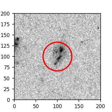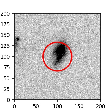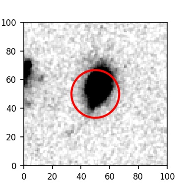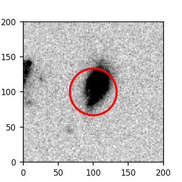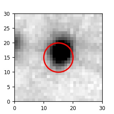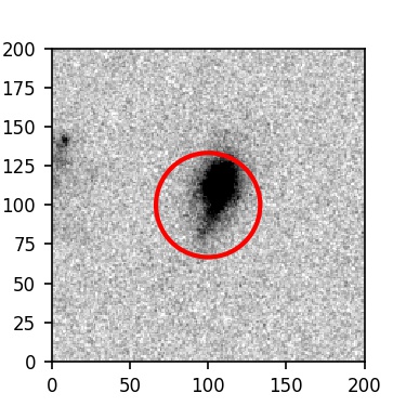 The red circle in the various panels is 1" in radius. The images are 6"x6".