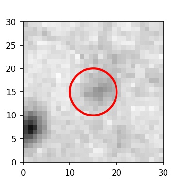 The red circle in the various panels is 1" in radius. The images are 6"x6".