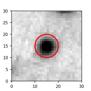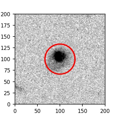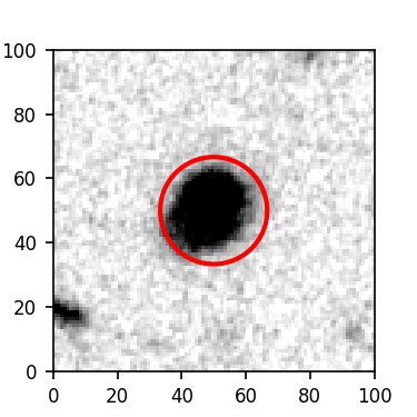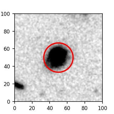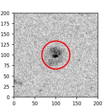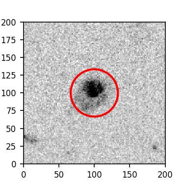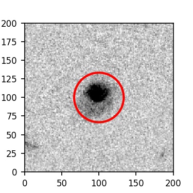 The red circle in the various panels is 1" in radius. The images are 6"x6".
