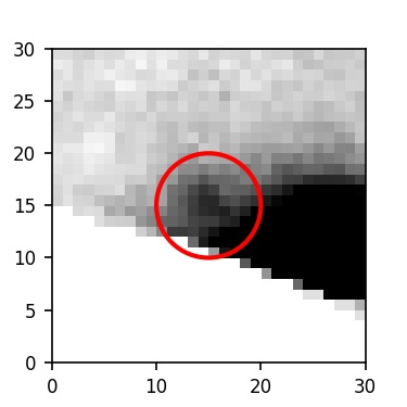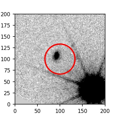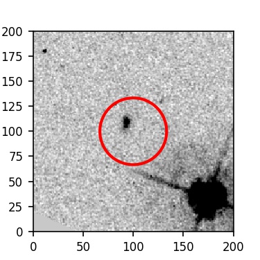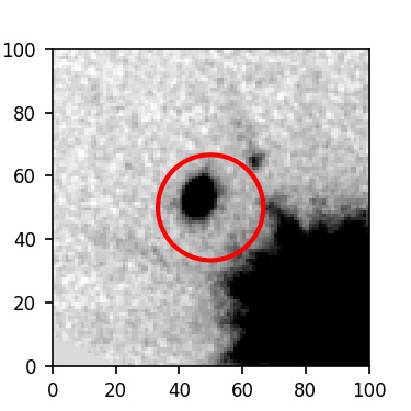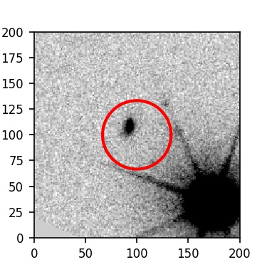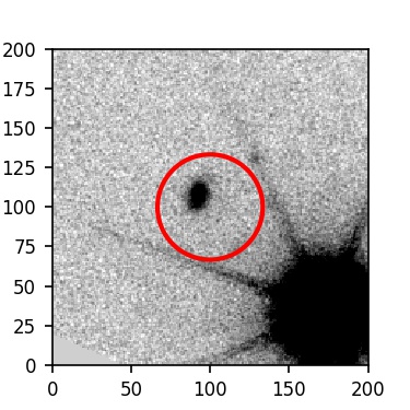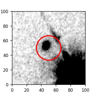 The red circle in the various panels is 1" in radius. The images are 6"x6".