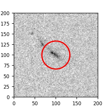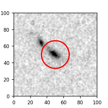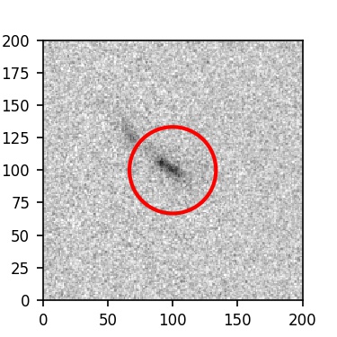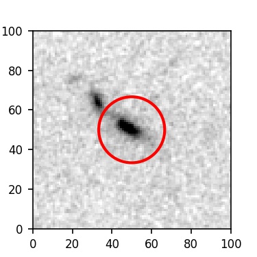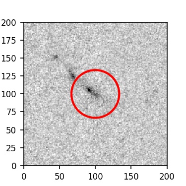 The red circle in the various panels is 1" in radius. The images are 6"x6".