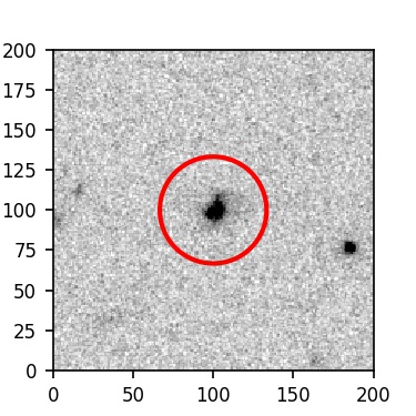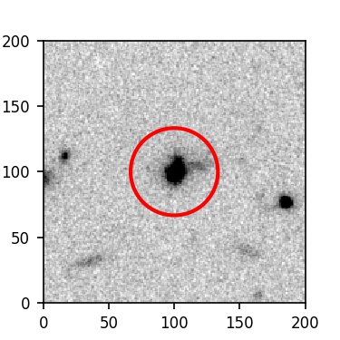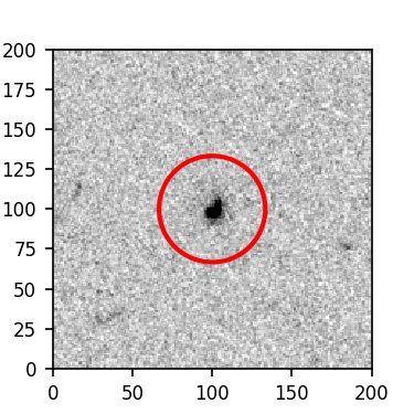 The red circle in the various panels is 1" in radius. The images are 6"x6".