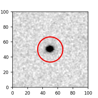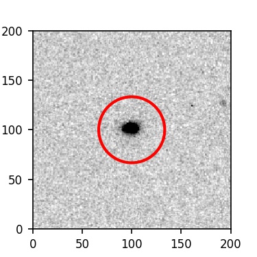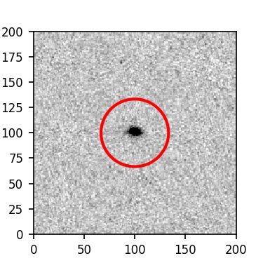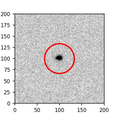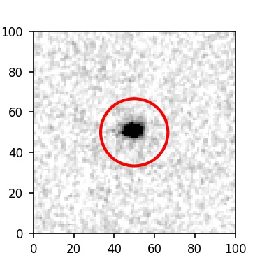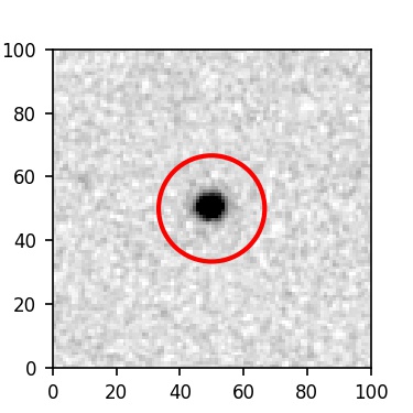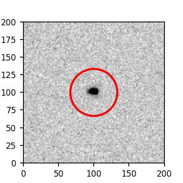The red circle in the various panels is 1" in radius. The images are 6"x6".