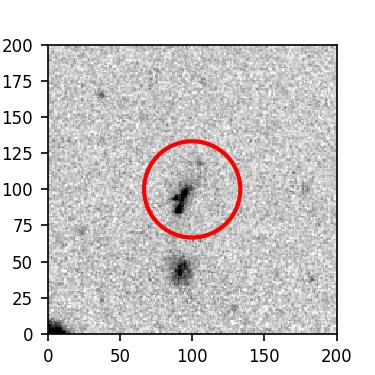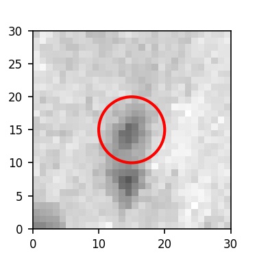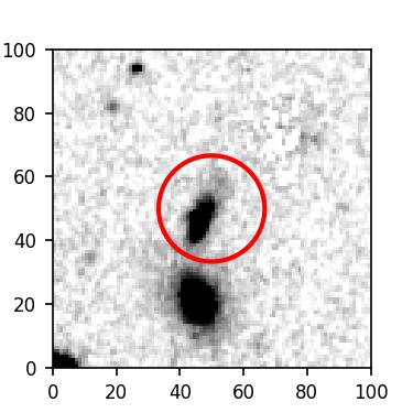 The red circle in the various panels is 1" in radius. The images are 6"x6".