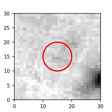 The red circle in the various panels is 1" in radius. The images are 6"x6".