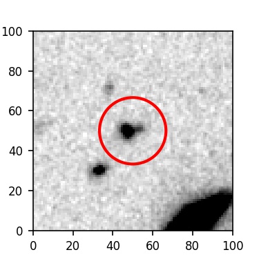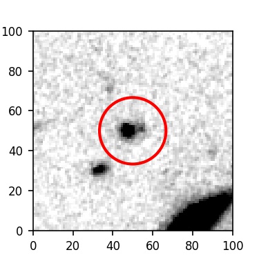 The red circle in the various panels is 1" in radius. The images are 6"x6".