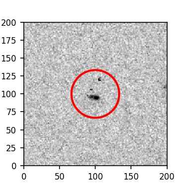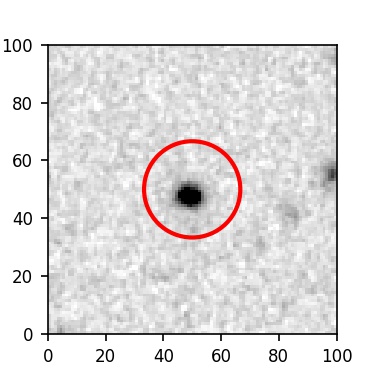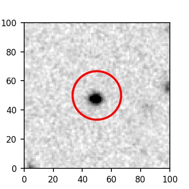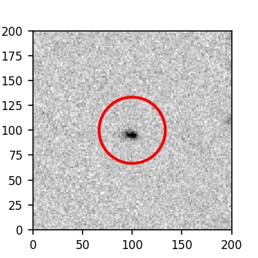 The red circle in the various panels is 1" in radius. The images are 6"x6".