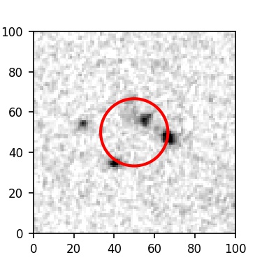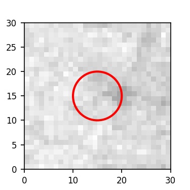 The red circle in the various panels is 1" in radius. The images are 6"x6".