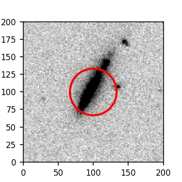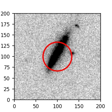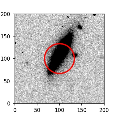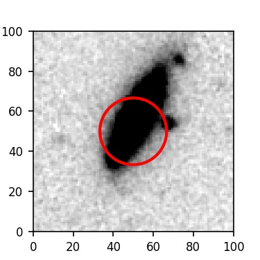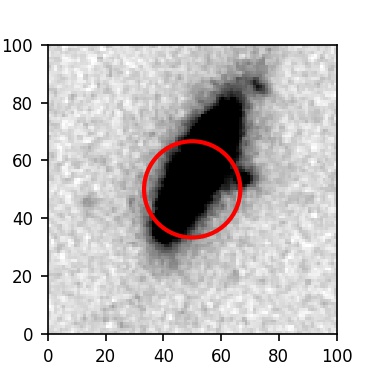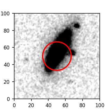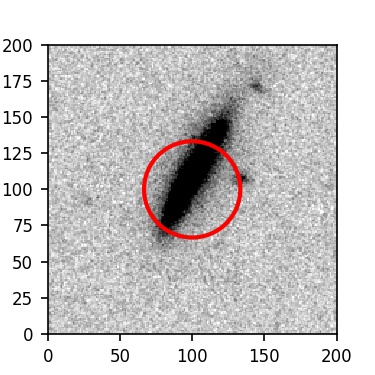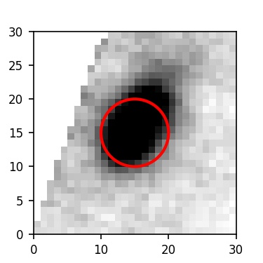 The red circle in the various panels is 1" in radius. The images are 6"x6".