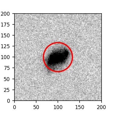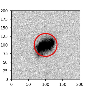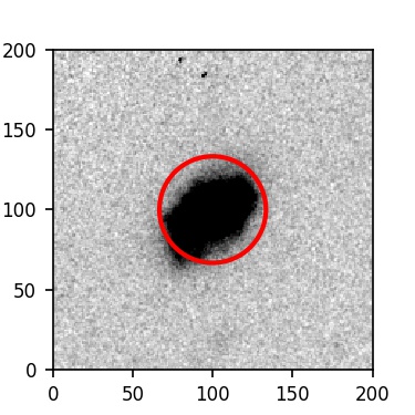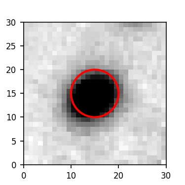 The red circle in the various panels is 1" in radius. The images are 6"x6".