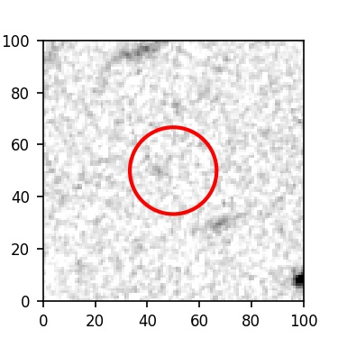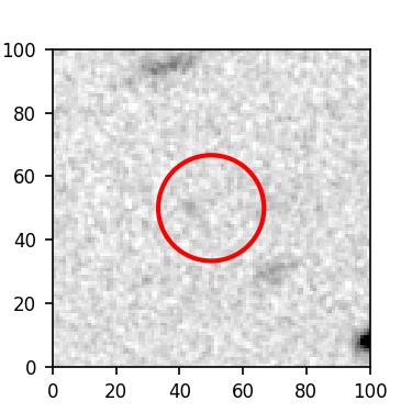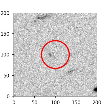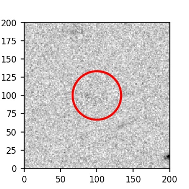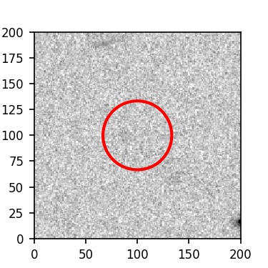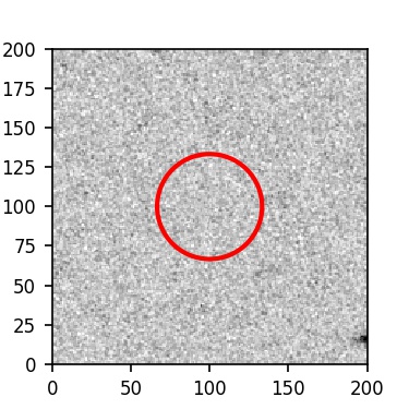 The red circle in the various panels is 1" in radius. The images are 6"x6".