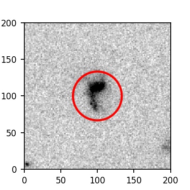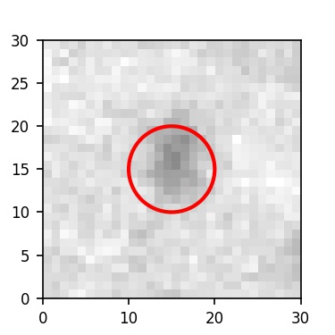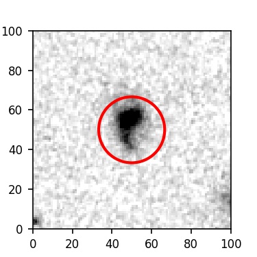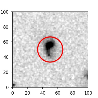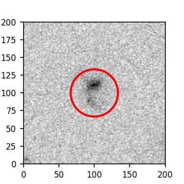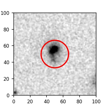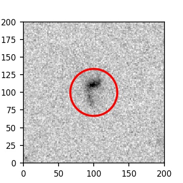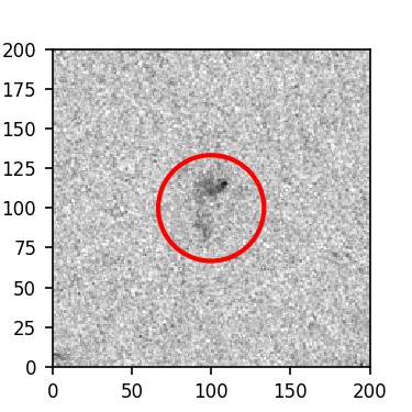 The red circle in the various panels is 1" in radius. The images are 6"x6".