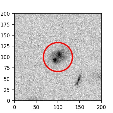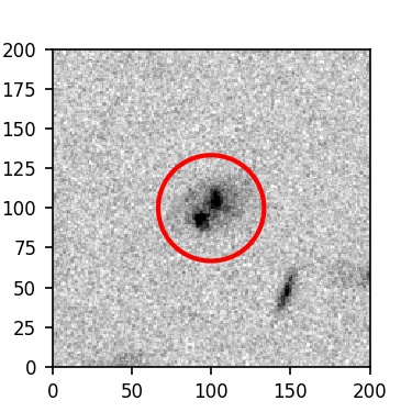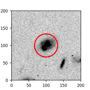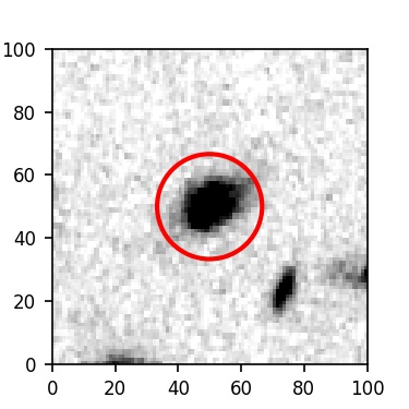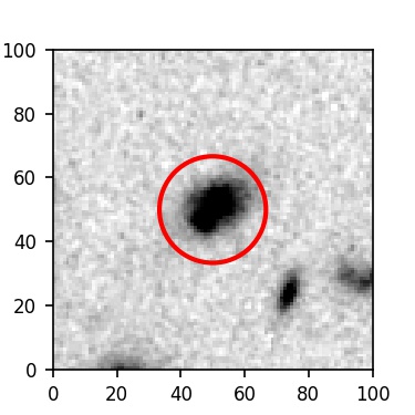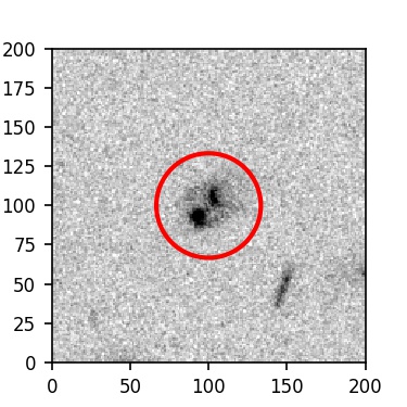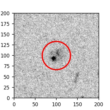 The red circle in the various panels is 1" in radius. The images are 6"x6".