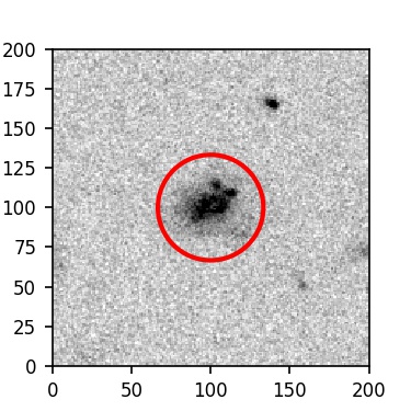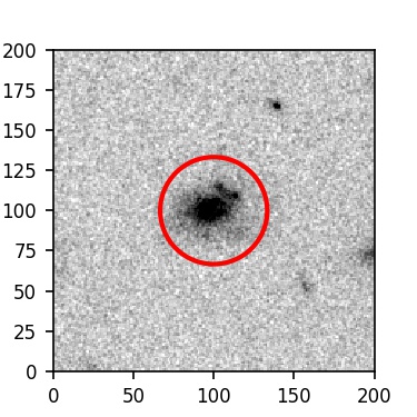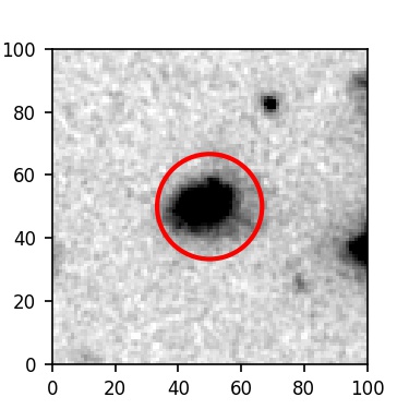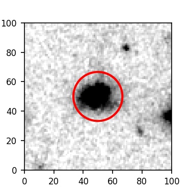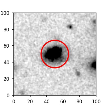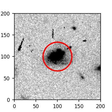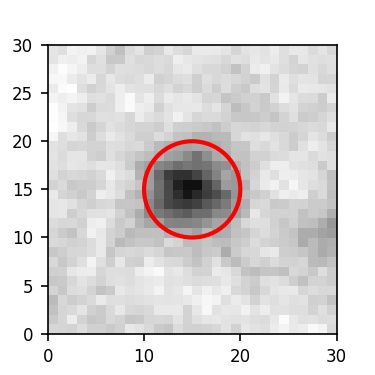 The red circle in the various panels is 1" in radius. The images are 6"x6".