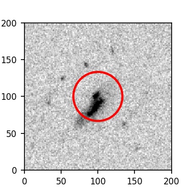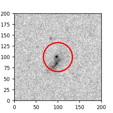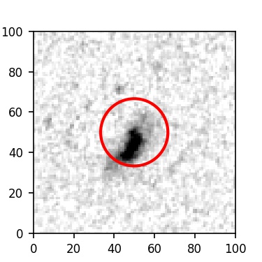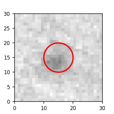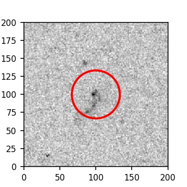 The red circle in the various panels is 1" in radius. The images are 6"x6".