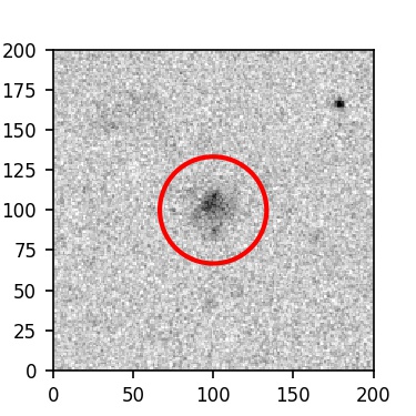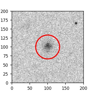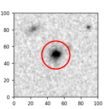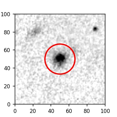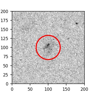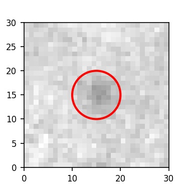 The red circle in the various panels is 1" in radius. The images are 6"x6".