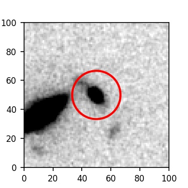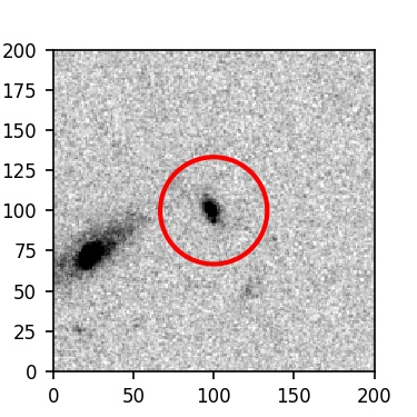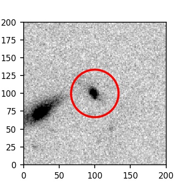The red circle in the various panels is 1" in radius. The images are 6"x6".