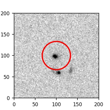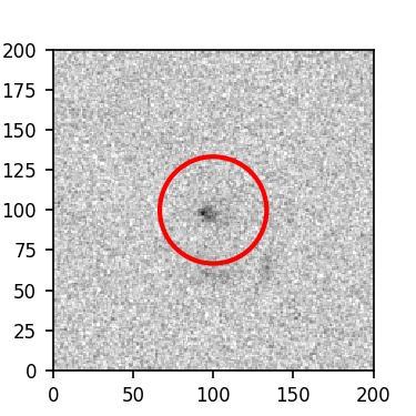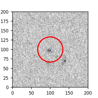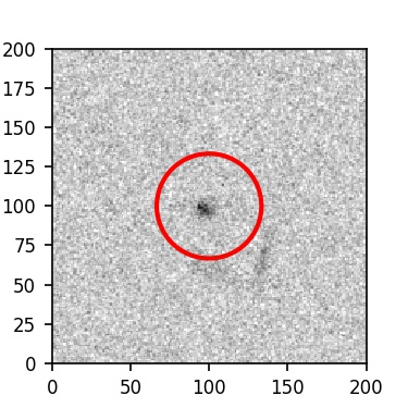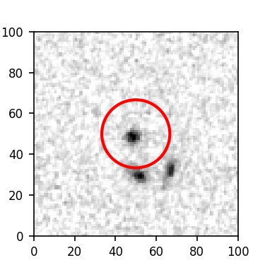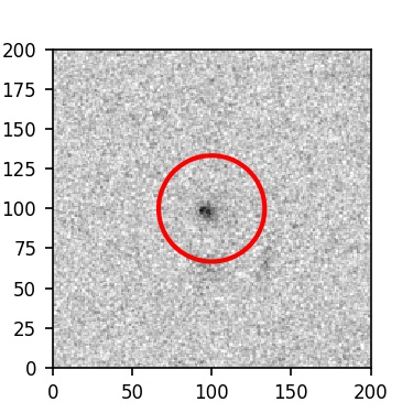 The red circle in the various panels is 1" in radius. The images are 6"x6".