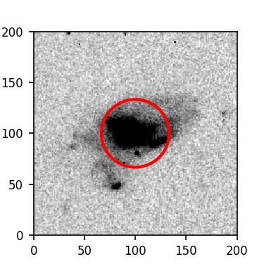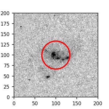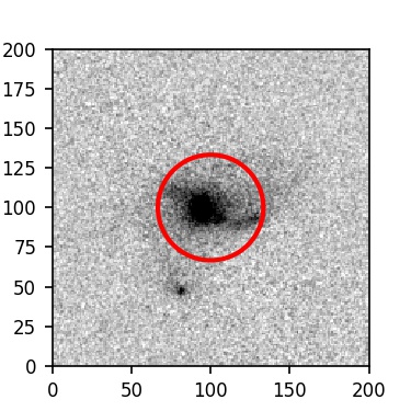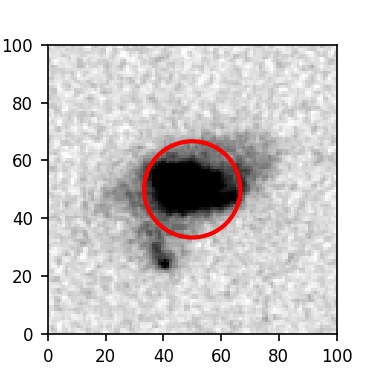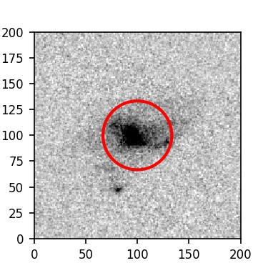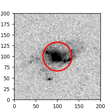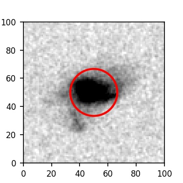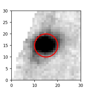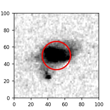 The red circle in the various panels is 1" in radius. The images are 6"x6".