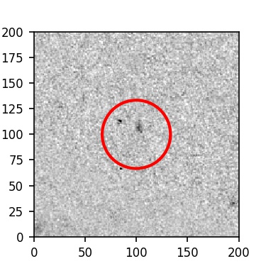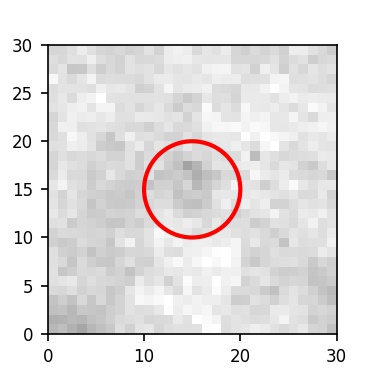 The red circle in the various panels is 1" in radius. The images are 6"x6".