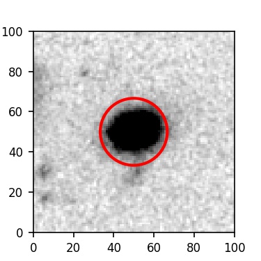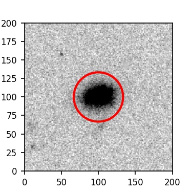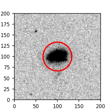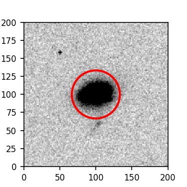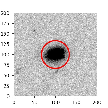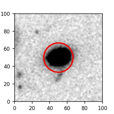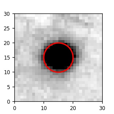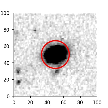 The red circle in the various panels is 1" in radius. The images are 6"x6".