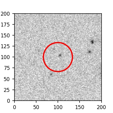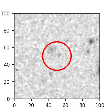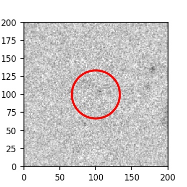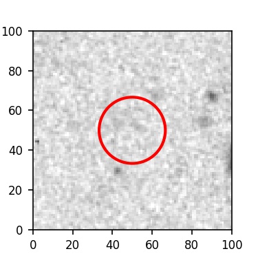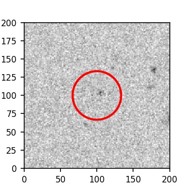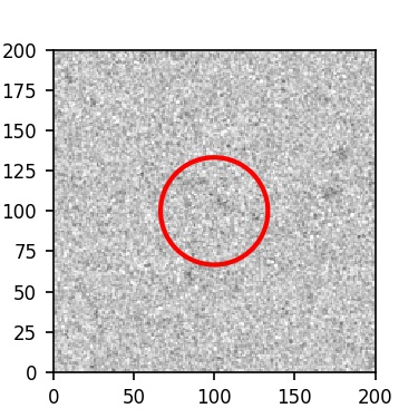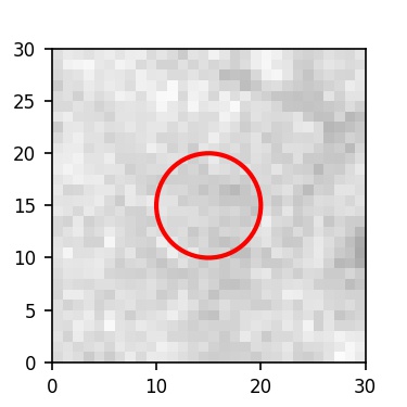 The red circle in the various panels is 1" in radius. The images are 6"x6".