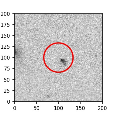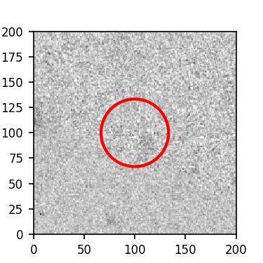 The red circle in the various panels is 1" in radius. The images are 6"x6".