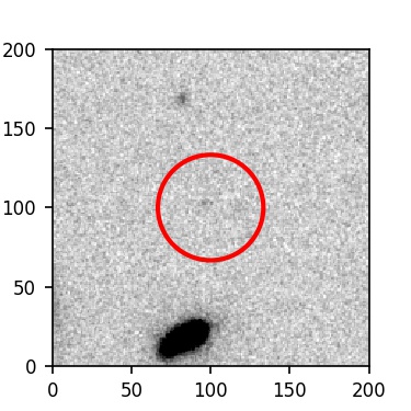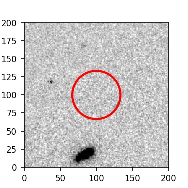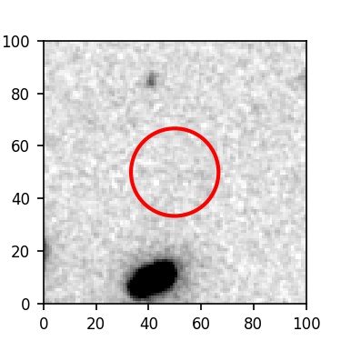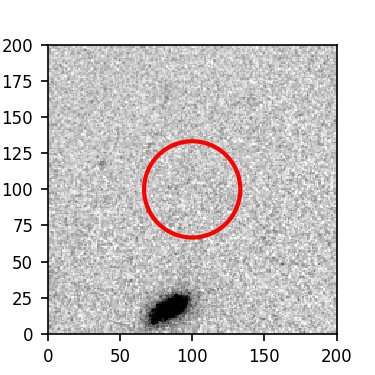 The red circle in the various panels is 1" in radius. The images are 6"x6".