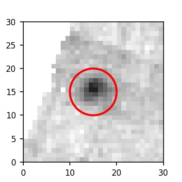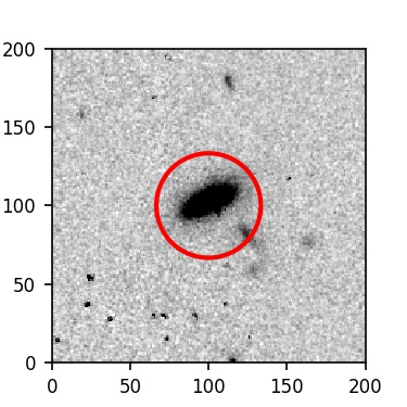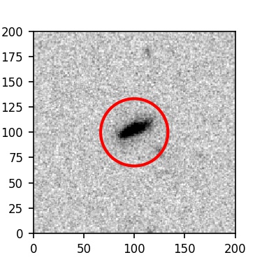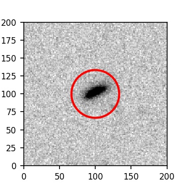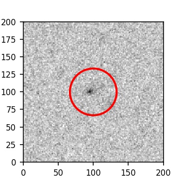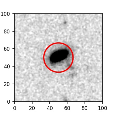 The red circle in the various panels is 1" in radius. The images are 6"x6".